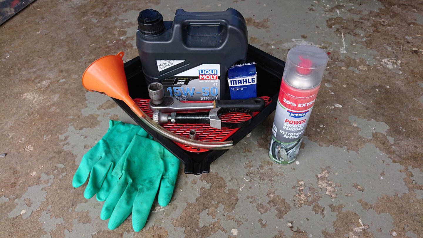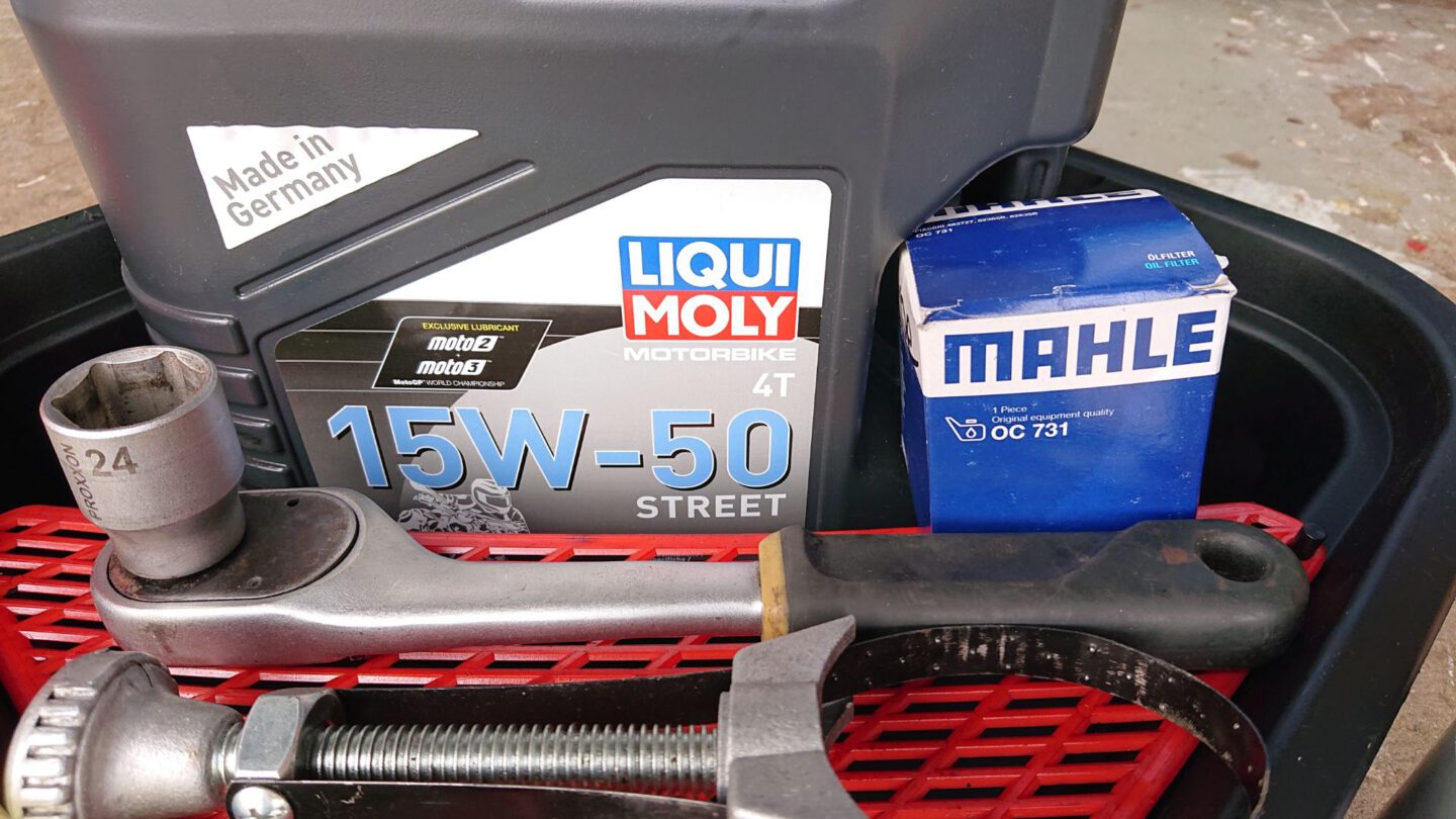 • 1,6 l Motoröl für 4T-Roller mit Freigabe nach JASO MA2 für Naskupplungen. Ich habe das LiquiMoly 15W-50 4T Street gewählt. (was schreibt Piaggio vor)?