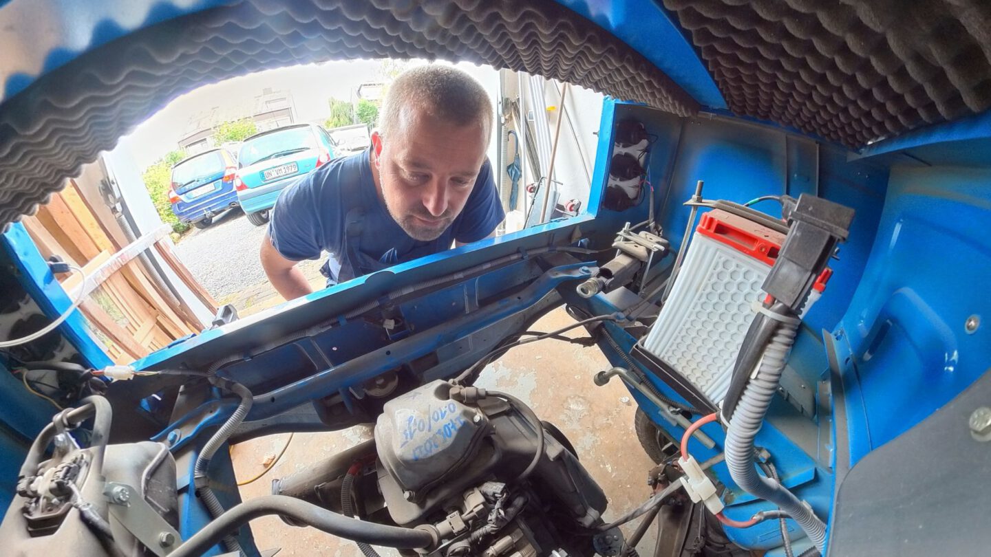 Schritt 3.3: Die Motorklappe hinten öffnen. Mich hat sie gestört und so haben ich sie gleich komplett abgebaut. Dann kommt man besser an den Motor dran.